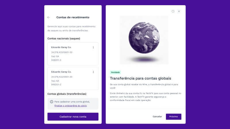 Agora todos os clientes da TechFX tem acesso à Transferência Global diretamente pela plataforma.